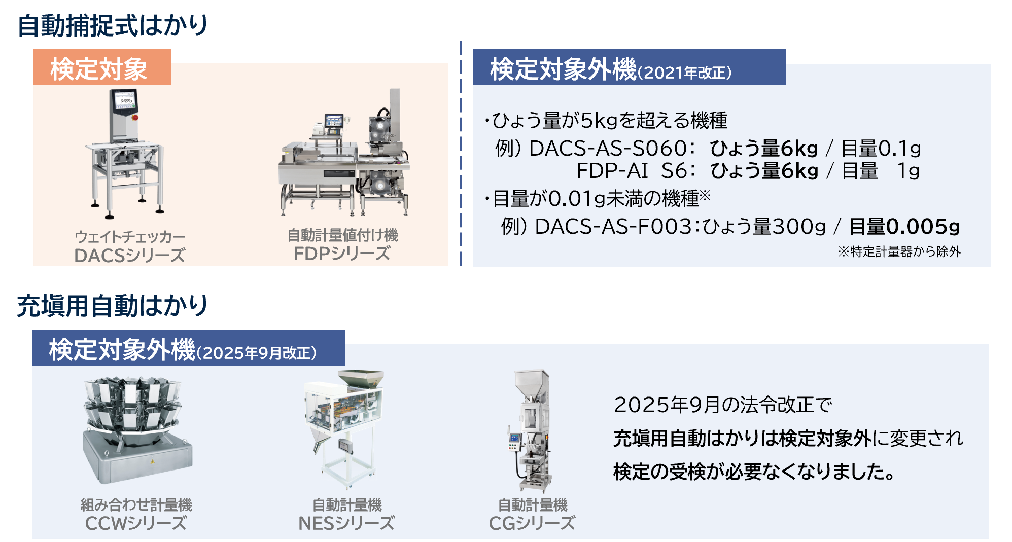 また2025年9月、充塡用自動はかりを含む3器種が検定対象外機となったため、自動はかりにおいて「検定」の運用が必要なのは「自動捕捉式はかり※」のみとなります。